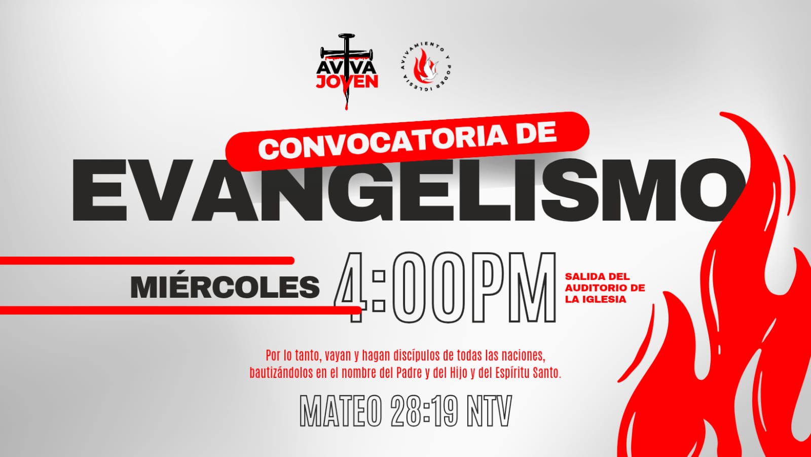 Todos los Domingos Escuela Dominical: 8:00 AM y 11:00 AM.